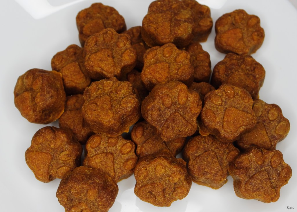 Whole wheat flour, peanut butter (contains sugar & salt), pure pumpkin, baking powder.